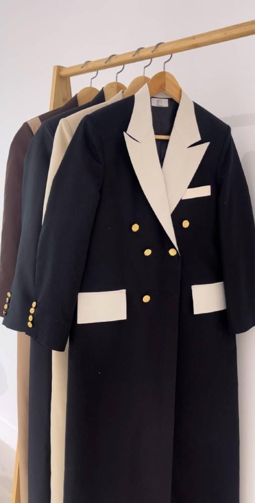 أنيقة بقصة عصرية بقماش الكتان خياطة داخلية وجيوب امامية و فتحة من الخلف و كتافات اسفنج وازره ذهبيه