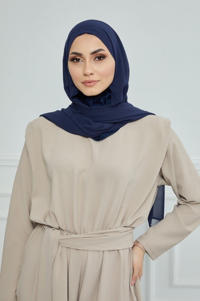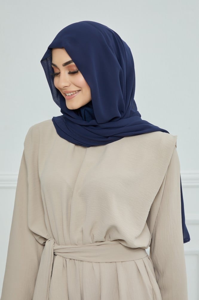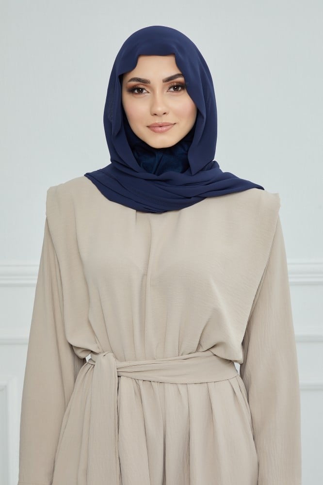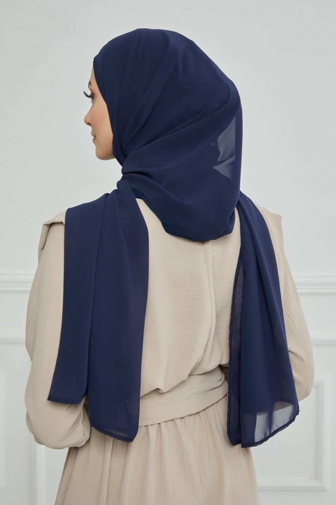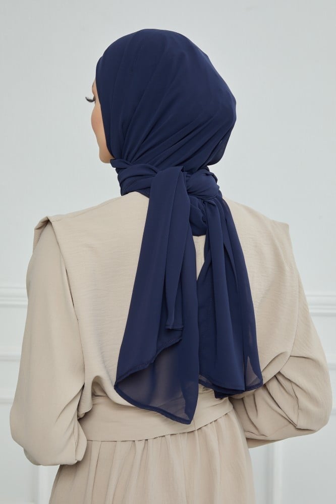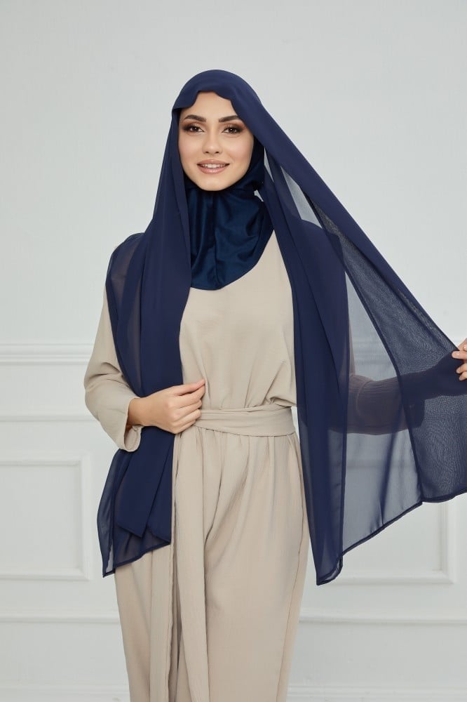 طرحة شيفون مع قبعة مشبوكة كحلي - متجر رغد