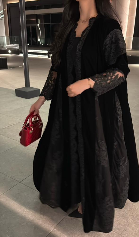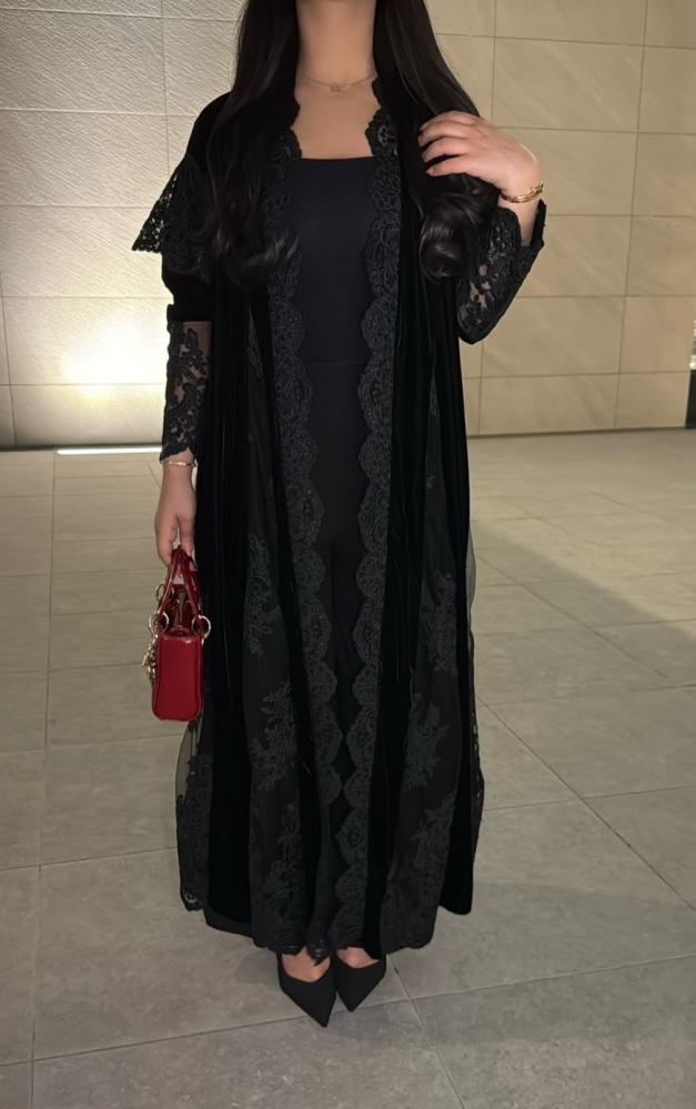 عباية مخمل كوري + دانتيلطرحة طرف دانتيلبالامكان التعديل على القصة والون الرجاء كتابه التعديل في الملاحضات