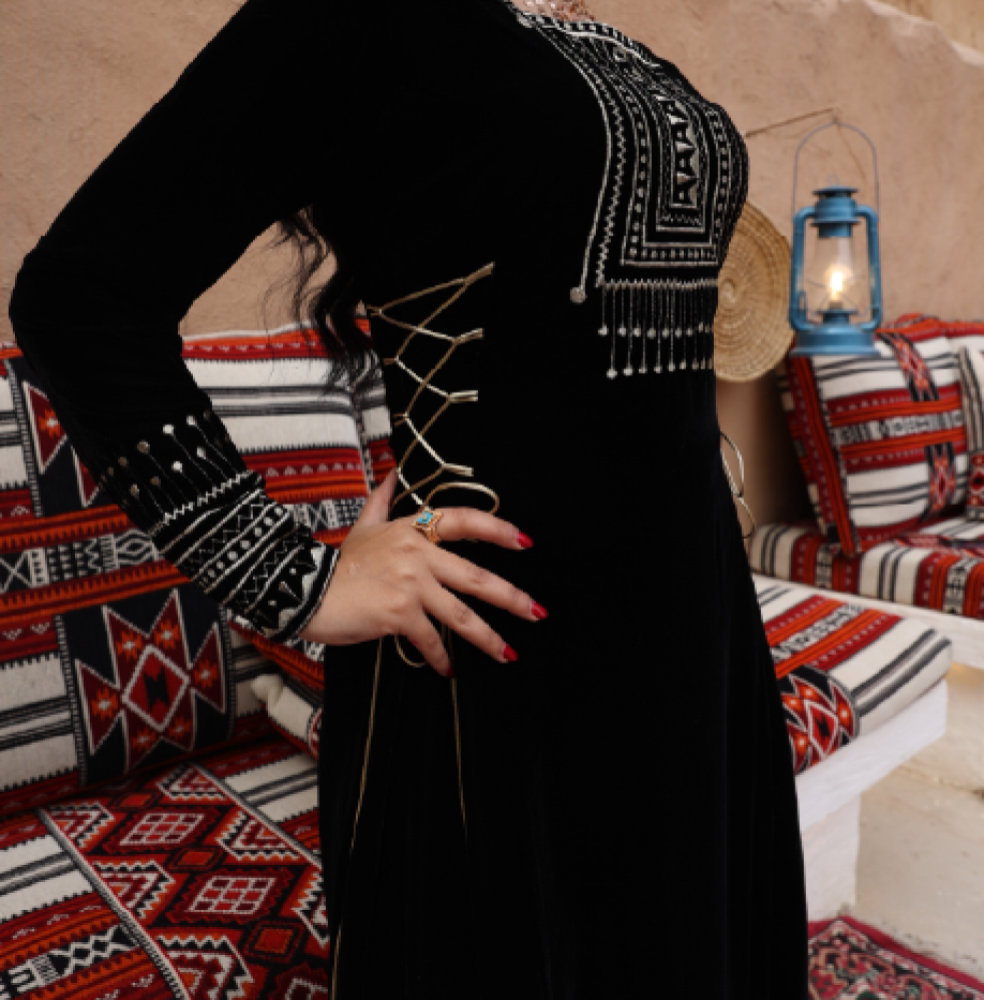 مطرزه بالنقش الجنوبي _ باللون الفضي _ على الصدر واليدين