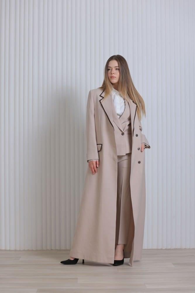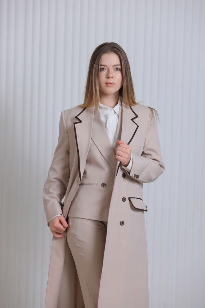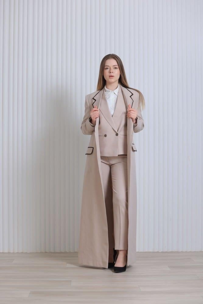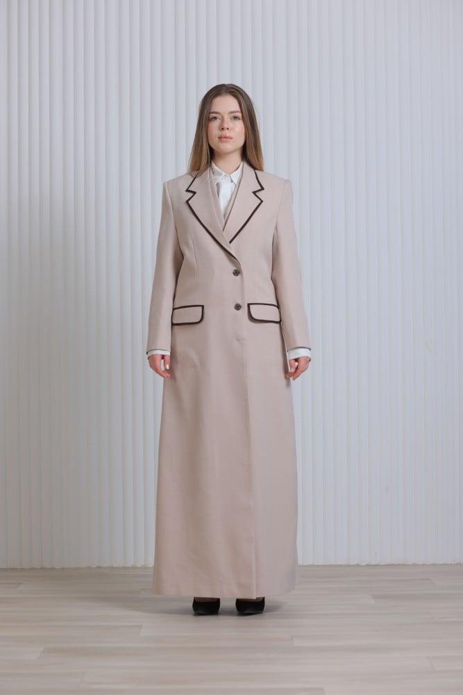عباية بليزر باللون البيج الفاتح وبتحديد باللون البني الغامق